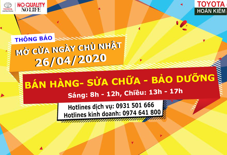 TOYOTA HOÀN KIẾM MỞ CỬA NGÀY CHỦ NHẬT (26/04/2020) TIẾP ĐÓN KHÁCH HÀNG