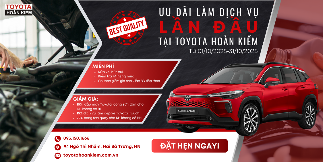 Ưu đãi đặc biệt dành cho khách hàng lần đầu làm dịch vụ tại Toyota Hoàn Kiếm (01/10 – 31/10/2025)